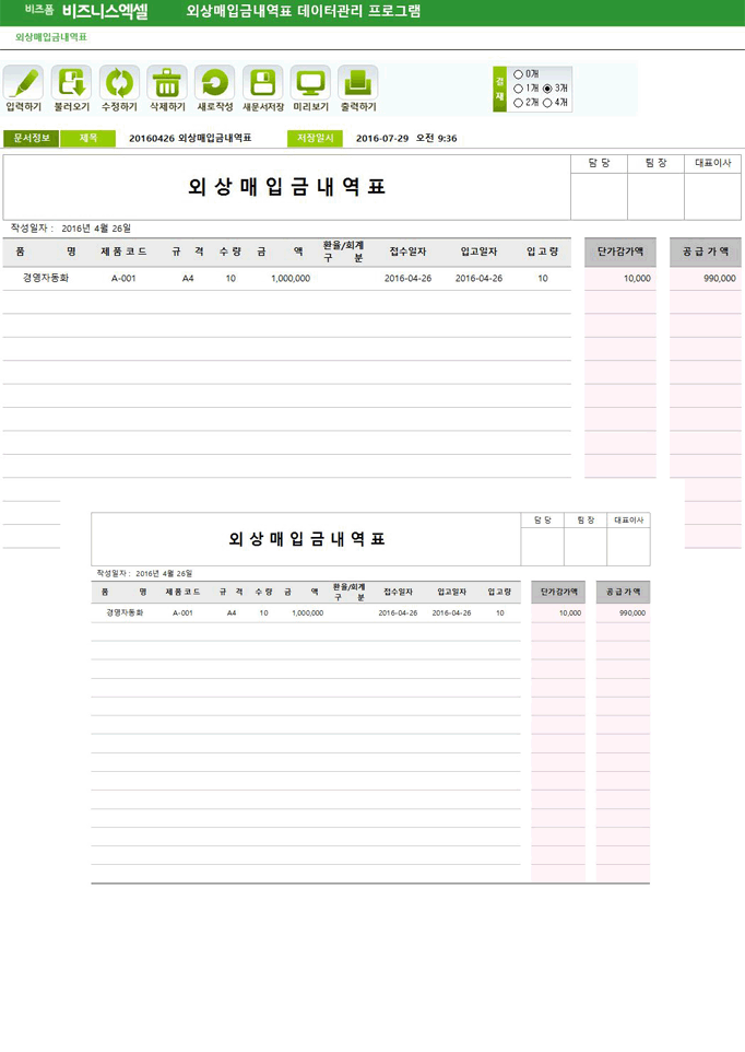 매입매출재고 서식을 단품으로 구입했다가 프리미엄으로 변경했는데요. 매입매출장만 구매하려고 했는데 이 안에 거래 명세서와 수금도 한번에 모두 관리할수 있어서 여러 ...