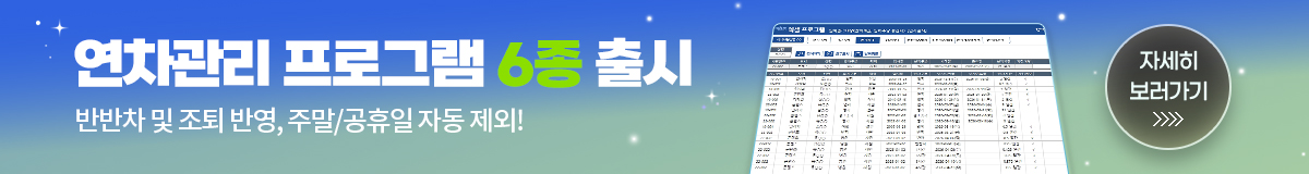 연차관리 프로그램 (반반차·조퇴 및 공휴일 반영, 입사일자 기준, 연차촉진제도, 연차수당, 연차촉진 서류 3종 제공)