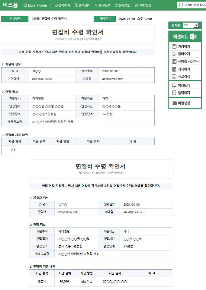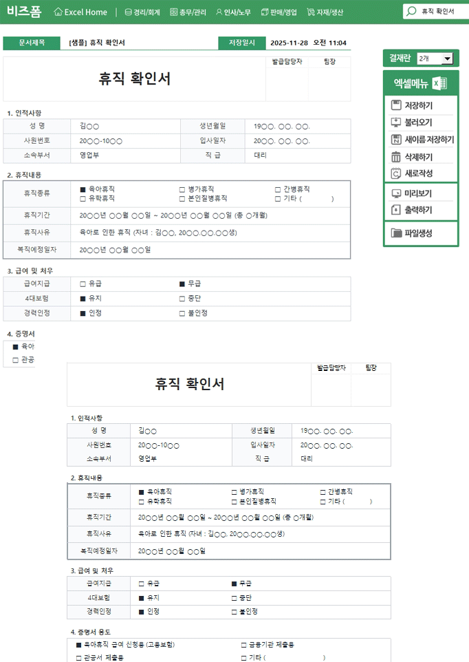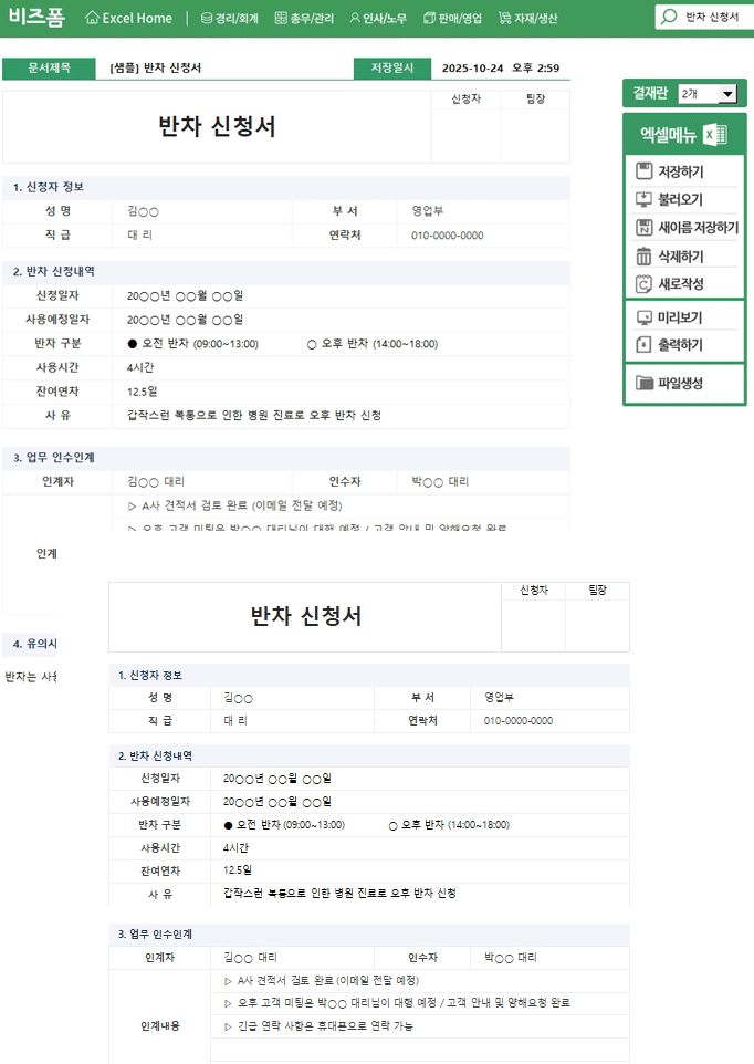 비즈폼 엑셀 맞춤 제작/수정 해드립니다.