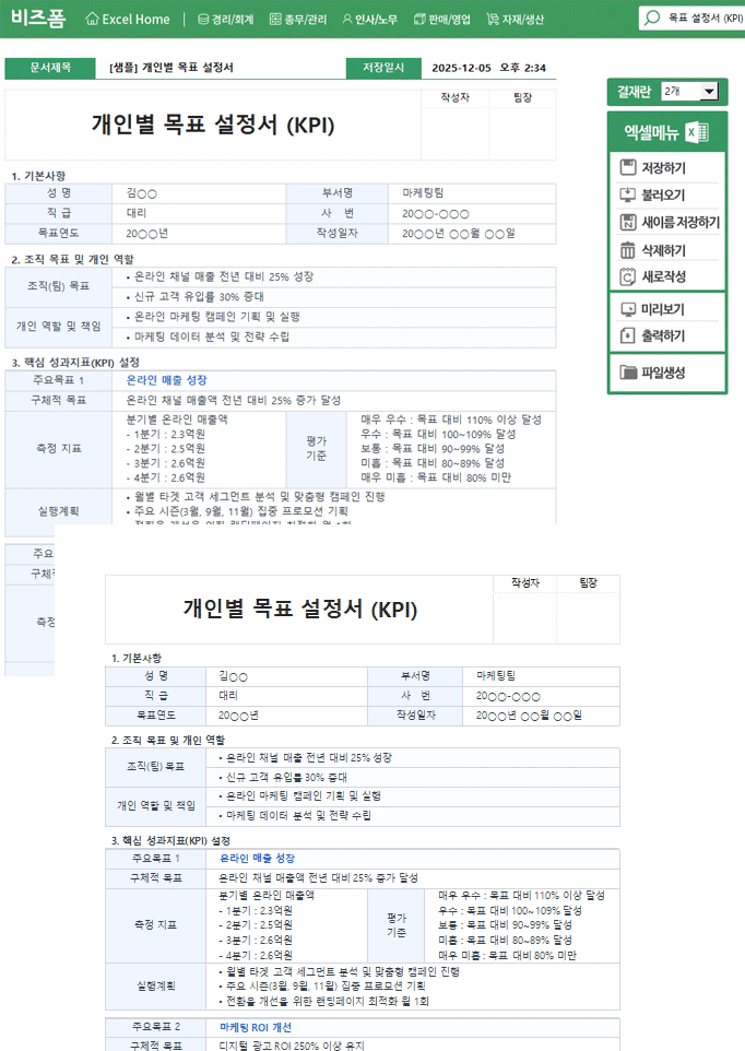 개인별 목표 설정서 (KPI)
