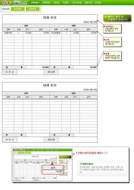 9,000원/월과목별 수량 단가 입력시 금액, 합계가 계산되는 서식입니다.