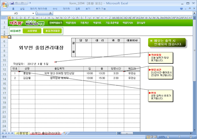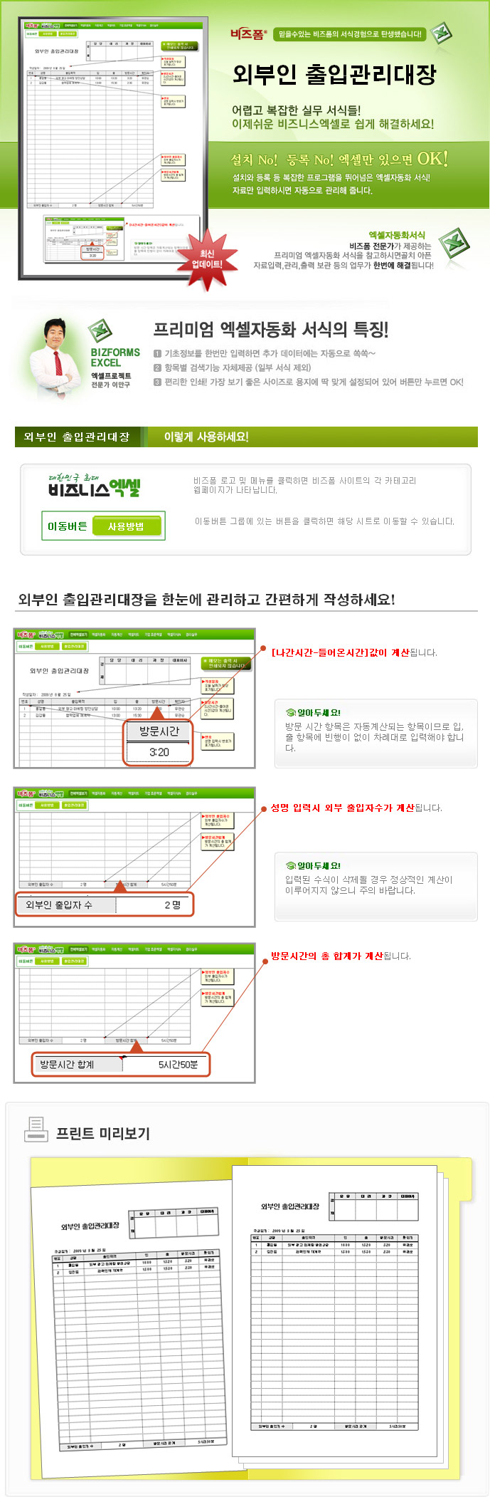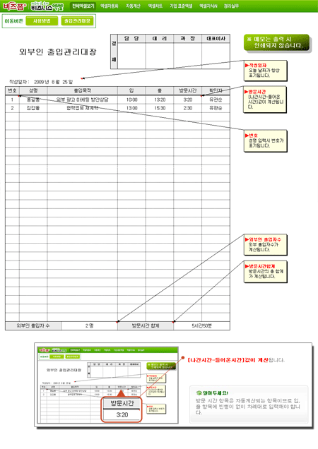 9,000원/월외부인의 입,출 시간 입력시 방문시간이 계산되며 방문자수, 총 방문시간이 계산됩니다.