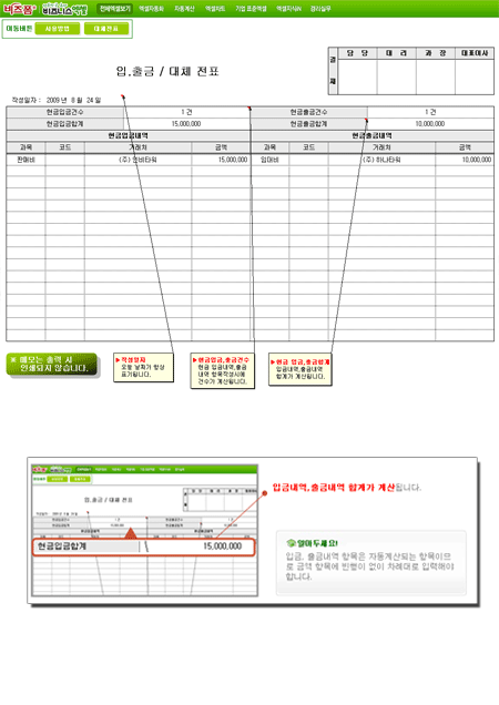 9,000원/월입,출금내역 입력시 입금, 출금 건수 및 금액이 계산됩니다.