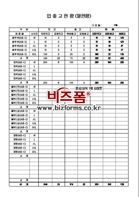 9,000원/월총 1000개의 기본정보를 입력하고 일별,월별 각 제품 및 사이즈별 입출고 및 반품, 반품출고등의 수량등을 총괄적으로 확인, 관리할 수 있는 엑셀자동화 서식입니다.