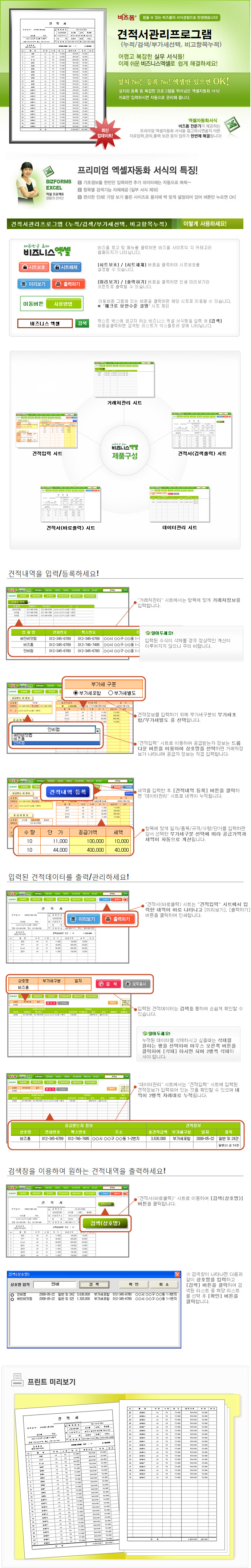 9,000원/월비고항목까지 누적관리가능하며, 등록된 견적내역을 상호명을 통하여 보다 쉽게 검색/출력할 수 있는 갑지/을지 형태의 견적서관리엑셀자동화서식입니다.