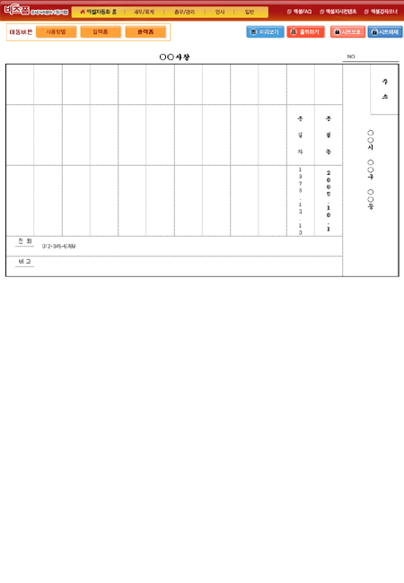 매입매출재고 통합관리 프로그램(일별현황, 월별현황, 거래처별현황, 상품별판매현황, 재고현황, 미지급미수금현황, 거래처원장, 견적서, 거래명세서, 세금계산서, 계산서)