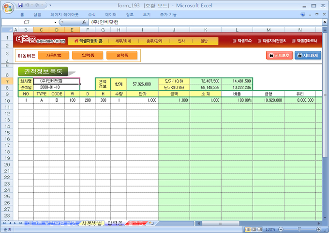 9,000원/월견적서 작성시 견적금액에 대한 세부명세서로서 각 비용에 대한 비율을 자동계산해 단가를 산출해내는 견적세부명세서로서 특수업조으이 견적서에 첨부될 수 있는 서식입니다.