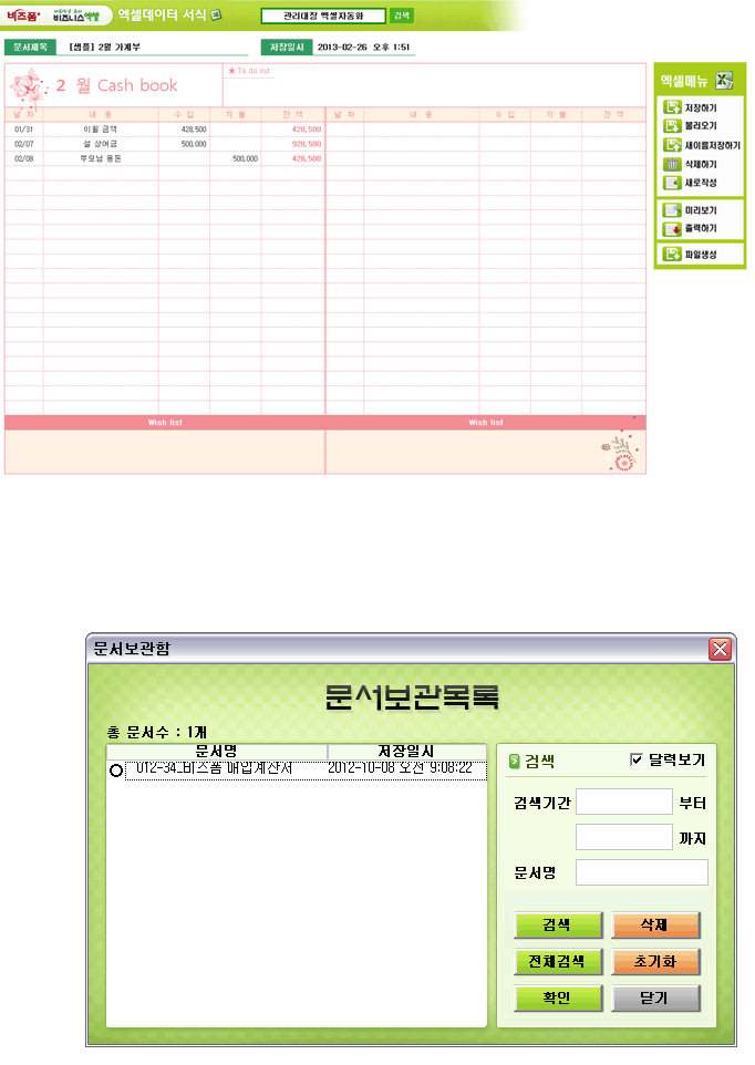 9,000원/월디자인이 가미된 월간 및 적정 기간별로 수입, 지출 내역을 입력하면 잔액이 자동으로 계산되는 Cash book으로 작성 건별로 저장, 수정, 불러오기, 별도 파일로 저장이 가능한 엑셀 데이터 서식입니다.