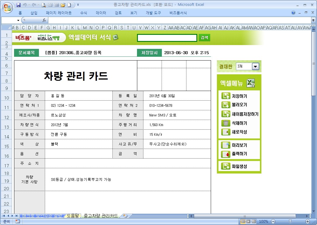 9,000원/월중고차 판매업에서 사용할 수 있는 차량관리 카드로 차량에 대한 기본 정보를 입력하고 진행했던 내용을 별도 기재할 수 있으며, 차량별로 누적하여 관리가 가능한 엑셀데이터서식 관리대장 파일입니다.