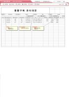 9,000원/월엑셀 자동계산 물품구매 소요예산표입니다. 작성자 정보와 제품명, 용도, 전/현 수량, 단가, 금액 등의 항목으로 구성되어 있습니다. 각 단가*수량으로 각 금액이 자동계산되고, 전 금액 대비 현금액으로 상향율이 자동계산됩니다. 그리고 각 항목의 합계가 자동계산되며, 별도 파일로 저장 가능한 파일생성, 손쉽게 다시 작성이 가능한 새로작성 기능, 결재란 자동조절 기능 이 포함되어 있습니다.