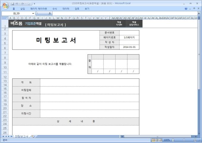 9,000원/월업체와의 미팅 내용을 기록/관리할 수 있는 미팅보고서입니다. 개요, 미팅업체, 참석자, 장소, 미팅시간, 상세내용 등으로 구성되어 있습니다.