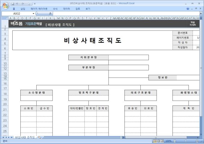 9,000원/월예기치 못한 회사 내에 문제가 생겼을 경우 각 부서의 담당자들이 기록되어 있는 비상사태 조직도 입니다. 지휘본부장, 부본부장, 정보반 등으로 구성되어 있습니다.
