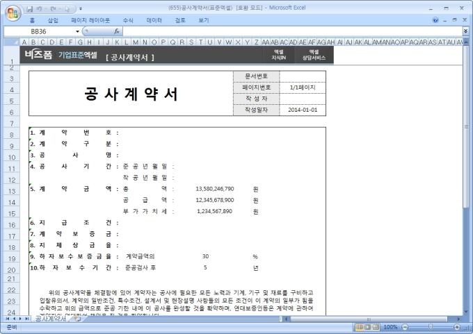 9,000원/월공사에 관련한 계약을 할 때 사용하는 공사계약서입니다. 계약번호, 계약구분, 공사명, 공사기간, 계약금액, 지급조건, 계약보증금 등으로 구성되어 있습니다.