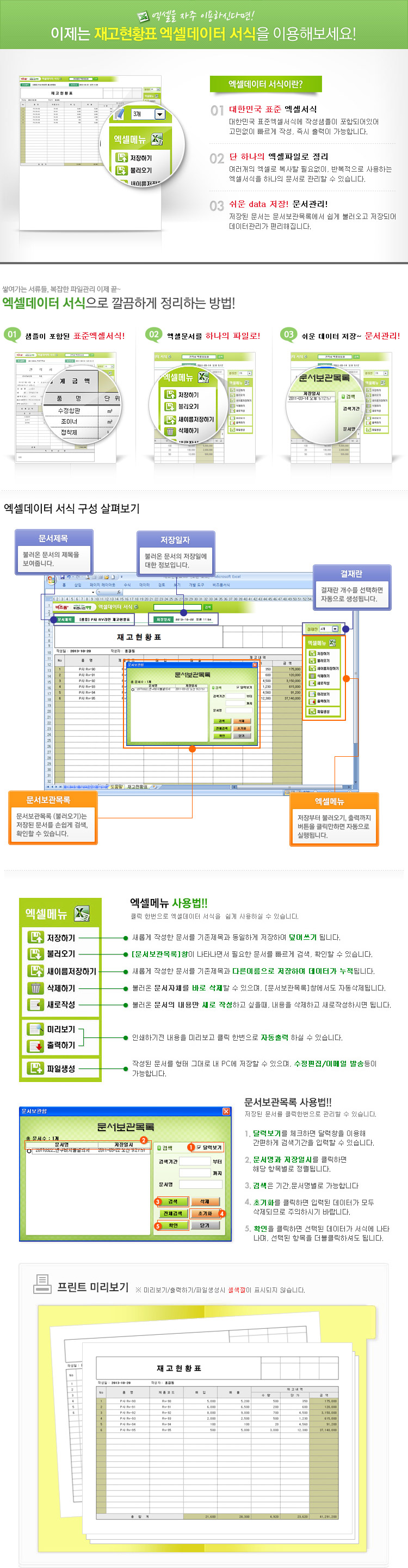 9,000원/월결재란이 포함된 재고현황표 서식으로 품명, 제품코드, 매입, 매출, 재고내역을 금액으로 기록할 수 있습니다. 품명을 입력하면 번호가 자동으로 기록되며, 수량과 단가를 입력하면 금액이 자동 계산됩니다. 건별로 저장, 수정, 불러오기, 별도 파일로 저장이 가능한 엑셀 데이터 서식입니다.