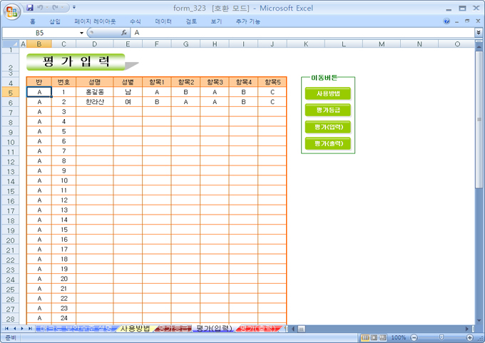 9,000원/월사전 수행평가 등급/점수를 기록하여 학생별로 등급을 입력시 자동으로 점수로 환산되어 총점 및 평균을 계산할 수 있도록 만든 자동화서식입니다.
