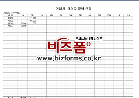 9,000원/월매상내역을 거래처,담당자로 구분하여 입력하면 해당내역을 기준으로 거래처별, 담당자별로 확인하고자 하는 기간동안의 매상금액이 계산되며 월별현황에서 기준년도의 매상금액을 거래처, 담당자 선택을 통하여 확인할 수 있도록 만든 자동화서식입니다.
