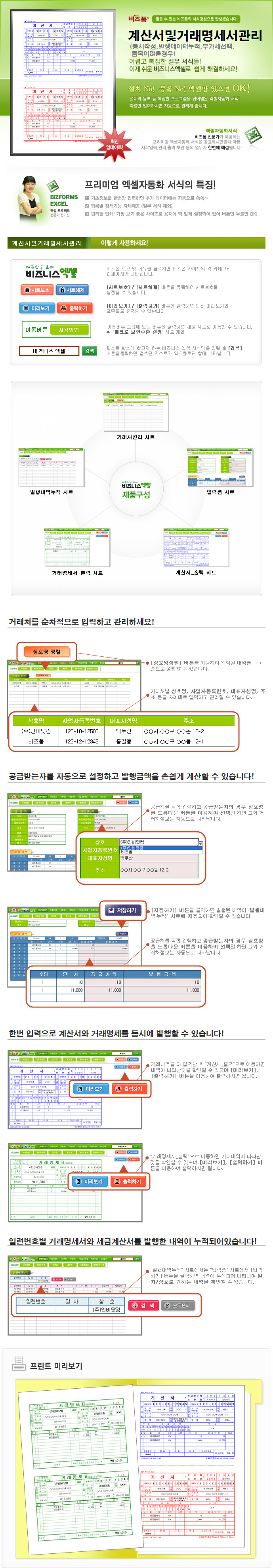 9,000원/월계산서및거래명세서(동시작성,발행데이터누적,부가세선택,품목이많을경우)입니다. 품목에 따른 거래내역을 거래명세서와 계산서로 한번에 출력을 할 수 있으며, 입력된 금액에 따라 공급가액. 세액(부가세선택)을 손쉽게 계산할 수 있는 엑셀자동화서식입니다. 거래명세서의 경우, 10개 이하, 30개 이하 두가지 형태로 출력이 가능합니다.