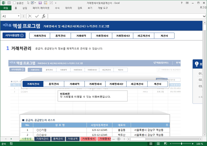 [체험판 무료샘플] 거래명세서 및 세금계산서(계산서) 누적관리 프로그램