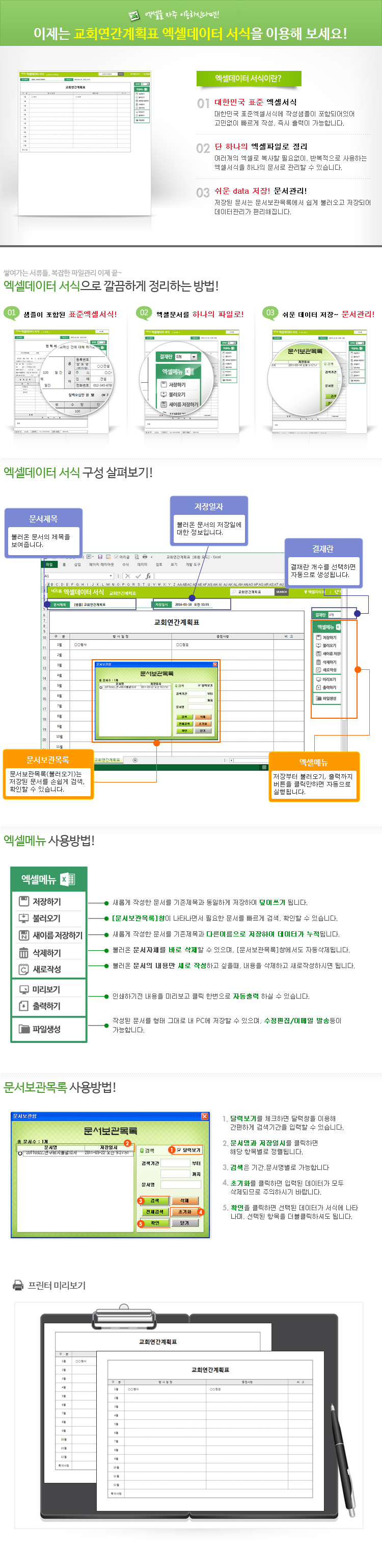 교회연간계획표입니다. 월별구분, 행사일정, 중점사항, 비고 등의 항목으로 구성되어 있습니다. 작성 건별로 데이터 누적, 저장, 수정, 불러올 수 있습니다.