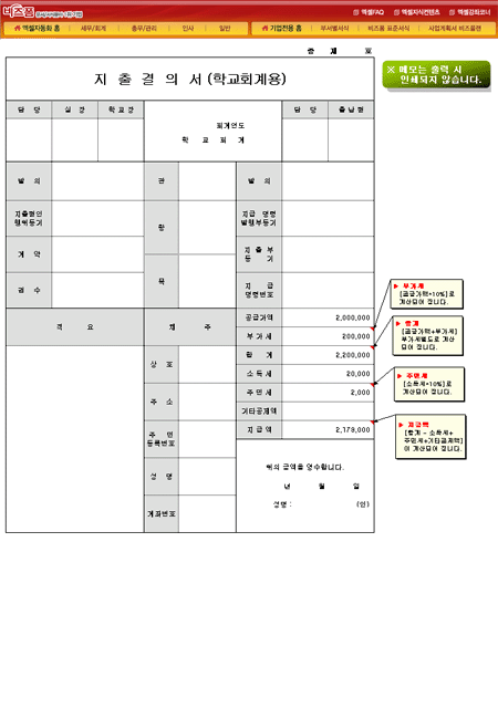 9,000원/월학교에서 회계용으로 사용할수 있는 지출결의서로 공급가액과 부가세, 주민세, 지급액이 자동으로 계산되는 자동계산서식입니다.