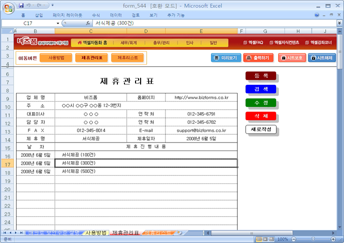 9,000원/월제휴사에 대한 정보 및 제휴진행사항을 입력하여 검색/수정/삭제를 통해 손쉽게 관리할 수 있는 제휴관리 엑셀자동화서식입니다.