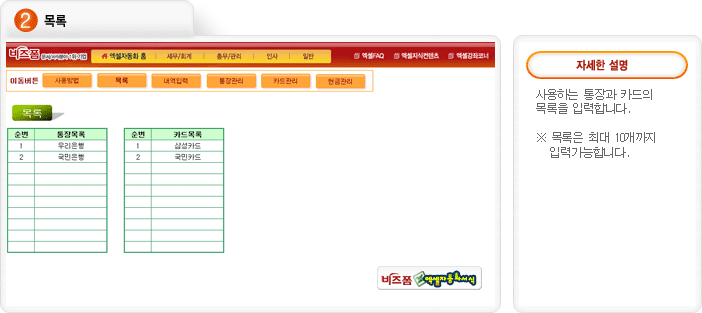 9,000원/월통장과 카드, 현금을 구분하여 내역을 입력하고 기간별로 검색하여 각각의 출납장으로 출력가능하며, 통장과 카드는 사용하는 목록을 미리 입력하여 세부적으로 검색가능한 입출금관리 엑셀자동화서식입니다.