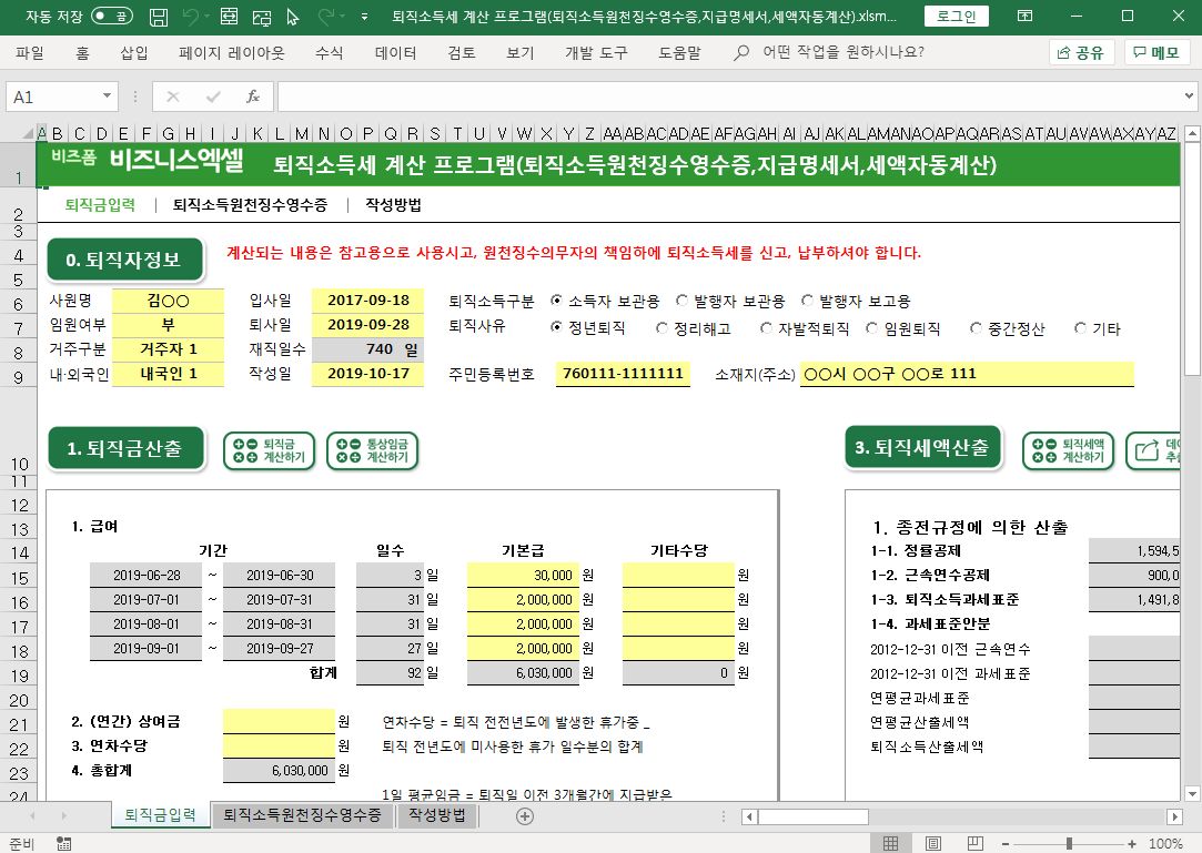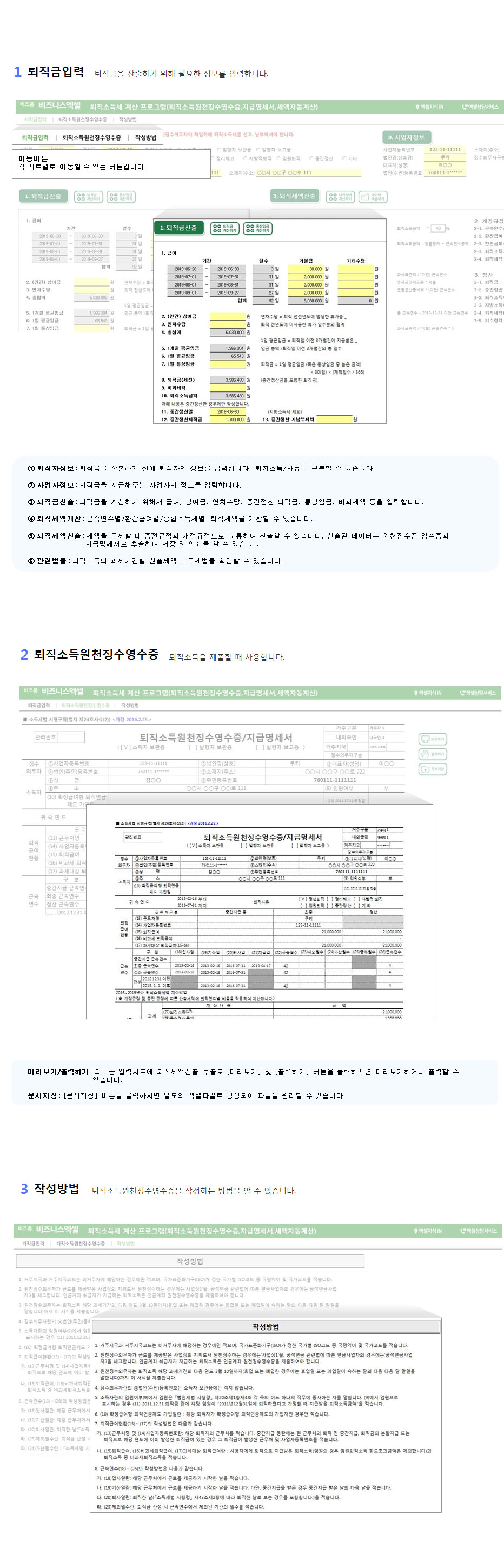 퇴직소득세 계산 프로그램입니다.퇴직소득원천징수영수장, 지급명세서, 세액자동계산을 함께관리할 수 있습니다.