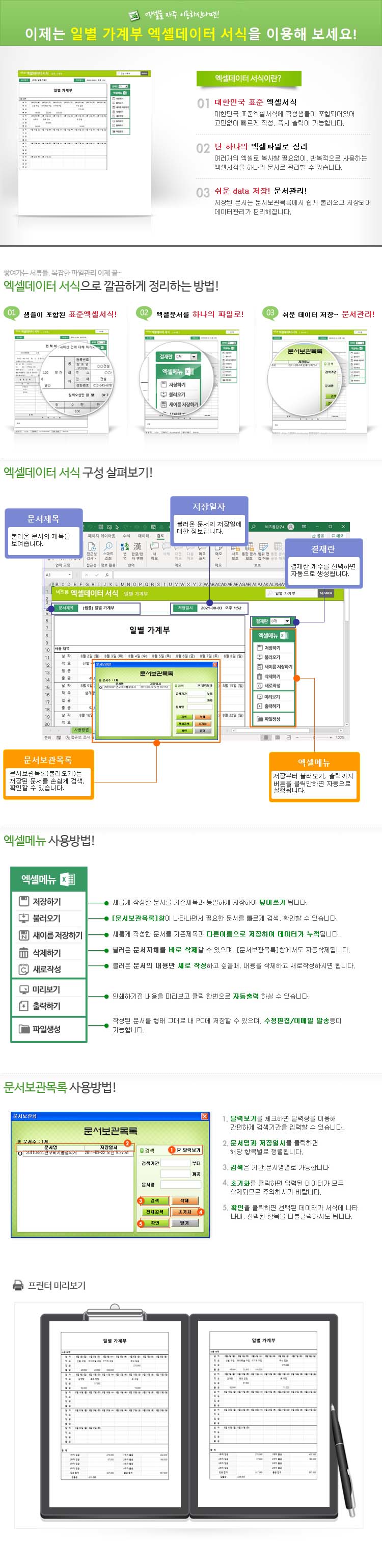 일별가계부입니다. 날짜, 적요, 입금, 출금, 합계 등으로 구성되어 있습니다. 작성 건별로 데이터 누적, 저장, 수정, 불러오기, 별도 파일로 저장이 가능한 엑셀 데이터 서식입니다.