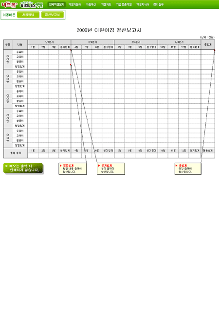 9,000원/월어린이집의 각 반별로 결산내용에 대한 월별 금액을 입력하면 반별, 분기별, 연간액이 합산되는 결산보고서입니다.
