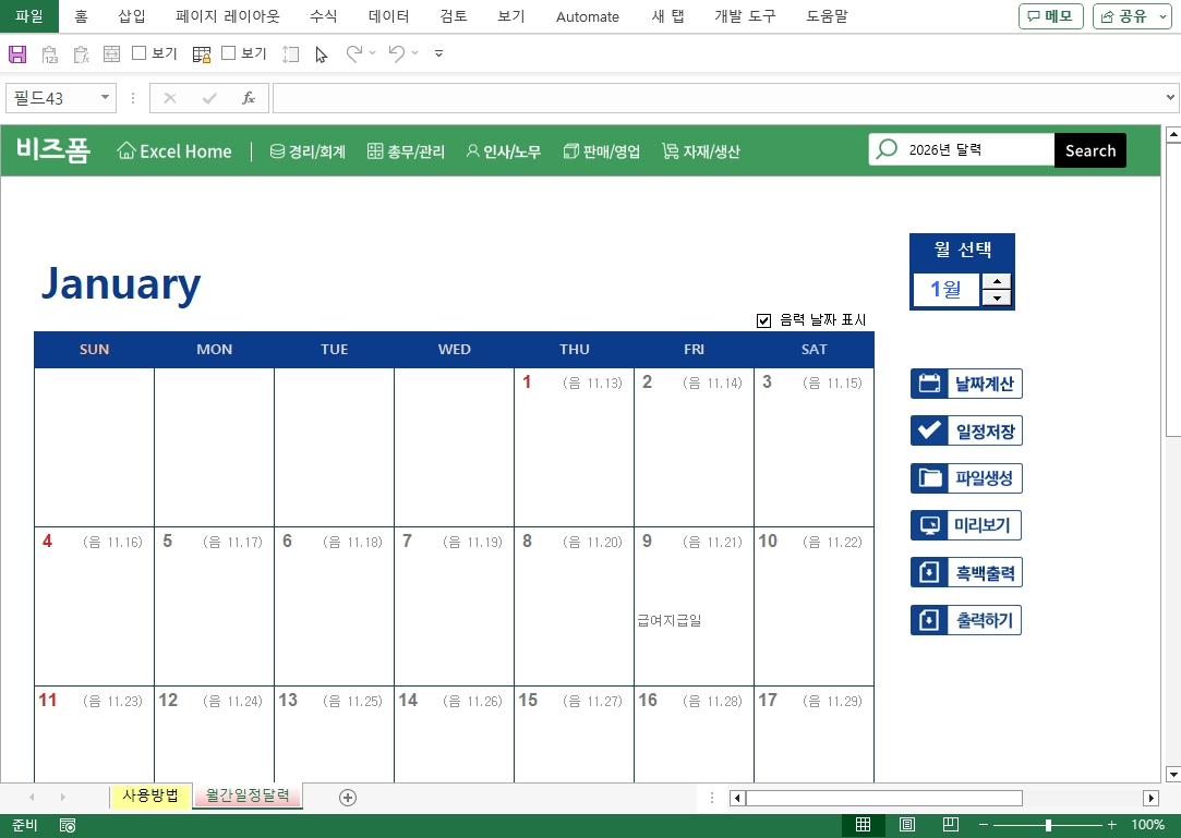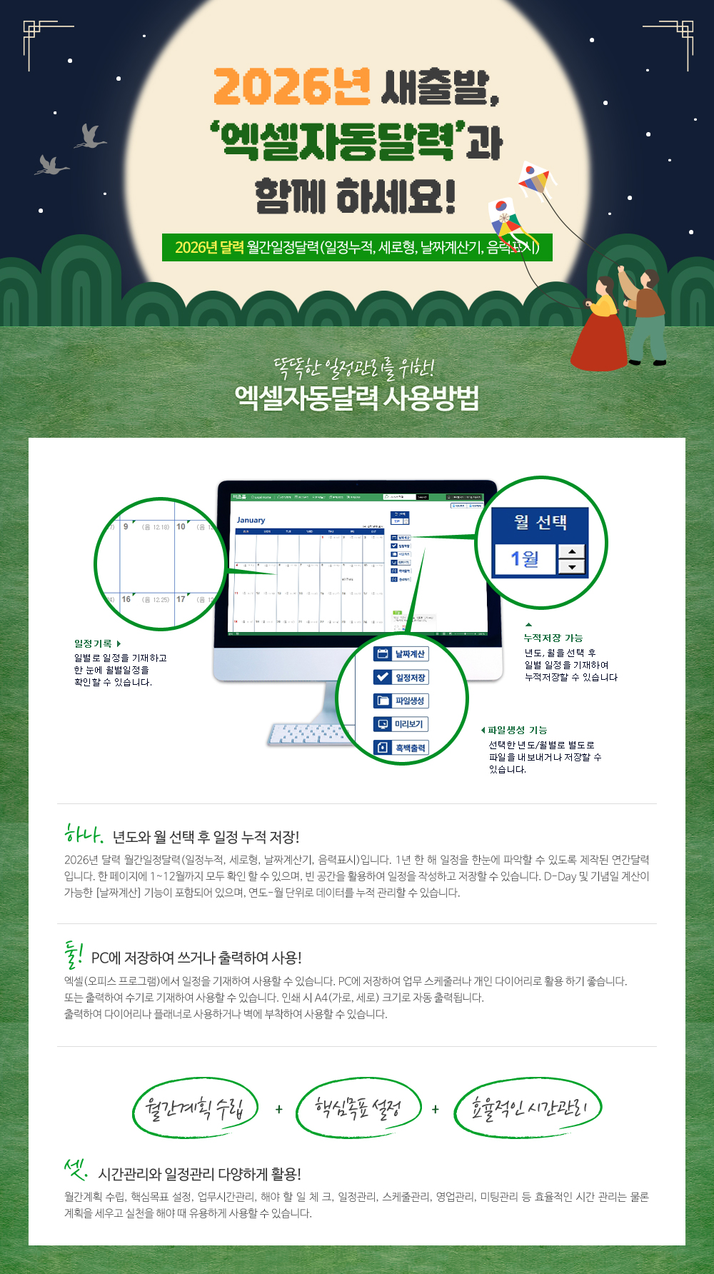 2026년 월간일정달력(일정누적,세로형,날짜계산기,음력표시) 서식입니다. 2026년 월간일정달력 서식은 매월의 중요한 일정을 효과적으로 관리하는 데 최적화된 달력으로 한 달의 일정을 한눈에 누적하여 볼 수 있어 편리합니다. 또한, 날짜 계산기 기능과 음력 표시 기능이 포함되어 있어, 다양한 약속과 계획을 더욱 체계적으로 정리할 수 있습니다.