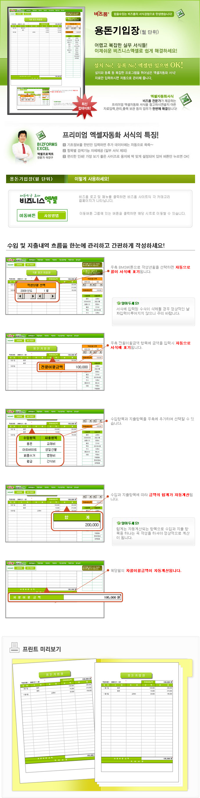 9,000원/월월 단위 용돈기입장입니다. 수입, 지출 항목을 사용자 이용에 따라서 추가 및 수정이 가능하며 전월.차월 이월금액이 자동계산되는 서식입니다.
