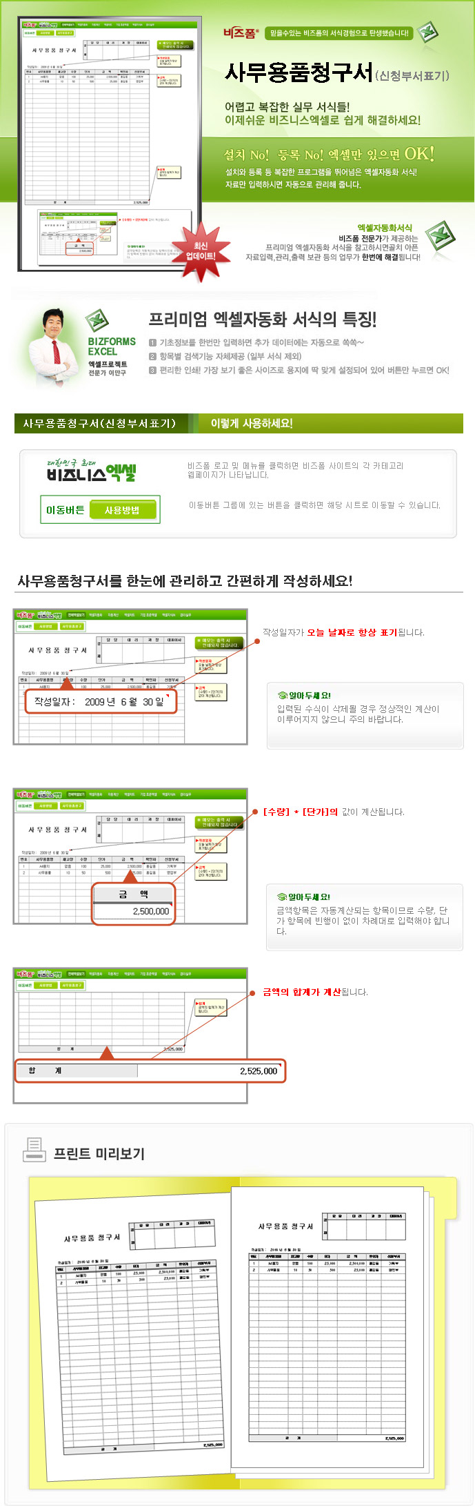 9,000원/월부서별로 사무용품을 청구할때 사용하는 서식으로서 신청 사무용품의 수량에 따른 단가별 금액, 합계가 자동계산되는 서식입니다.