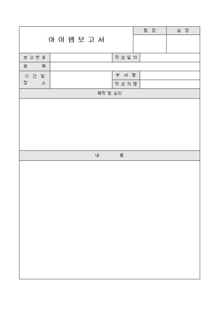 아이템에 대한 목적 및 요지. 내용등을 보고할 때 사용하는 양식입니다.