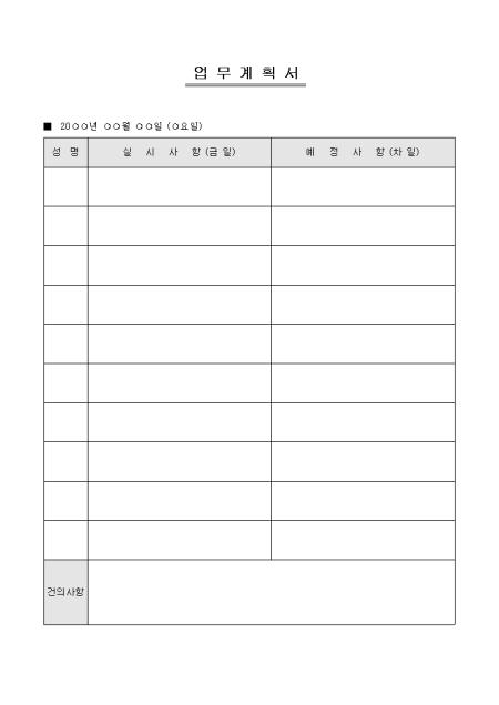 개개인의 포괄적인 업무계획에 대한 내역을 작성할 때 사용하는 양식입니다.