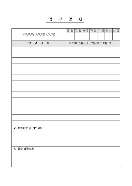 간략한 업무일지양식입니다.