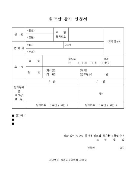 워크샵 참가를 희망할 때 사용하는 양식입니다.