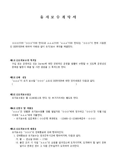 구입 또는 운영하고 있는 Server에 대한 전반적인 운영을 원활히 수행할 수 있도록 운영상의 문제점 발생시 해결 및 사전 점검을 목적으로 작성된 유지보수계약서입니다.