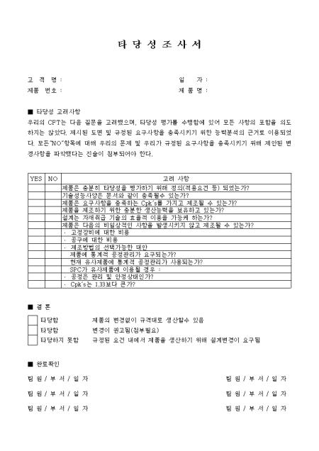 제품의 충분한 타당성 여부를 보고할 때 사용하는 양식입니다.