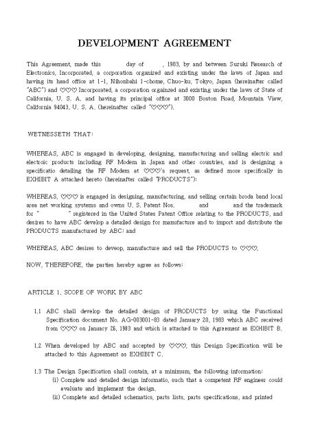 DEVELOPMENT AGREEMENT양식입니다. 모두 25개의 조항으로 구성되어 있습니다.