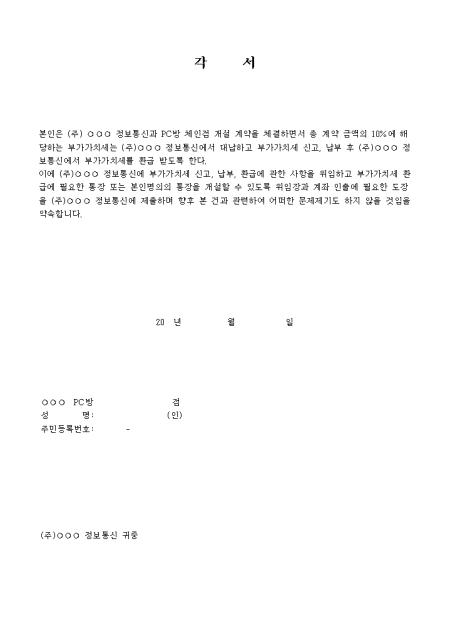 부가가치세 신고, 납부, 환급에 관한 사항을 위임한다는 내용의 각서입니다.