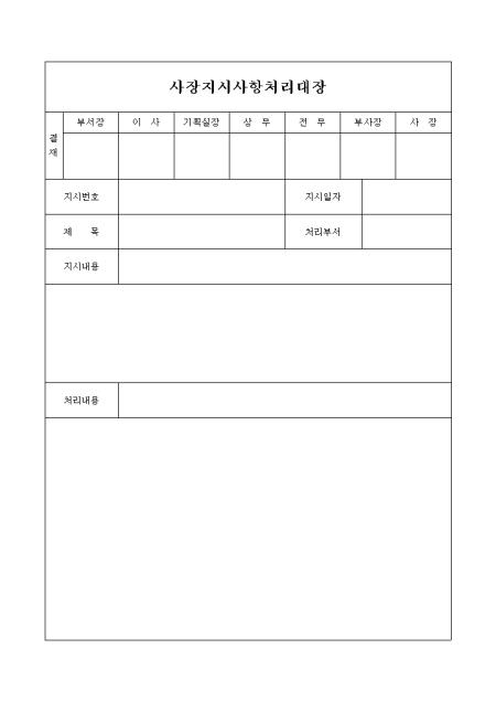 결재란,지시번호,지시일자,제목,처리부서,지시내용을 기록하는 양식입니다.