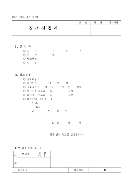 경조휴가와 경조금을 신청할 때 사용하는 양식입니다.