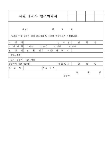 경조사실 및 진보를 부탁하고자 협조를 의뢰할 때 사용하는 양식입니다.