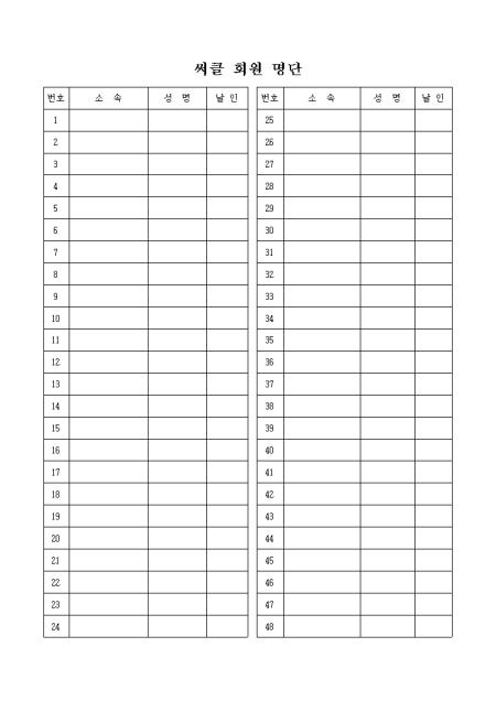 회사나 기타 단체에서 써클 회원의 명단을 기록할 때 사용하는 양식입니다.