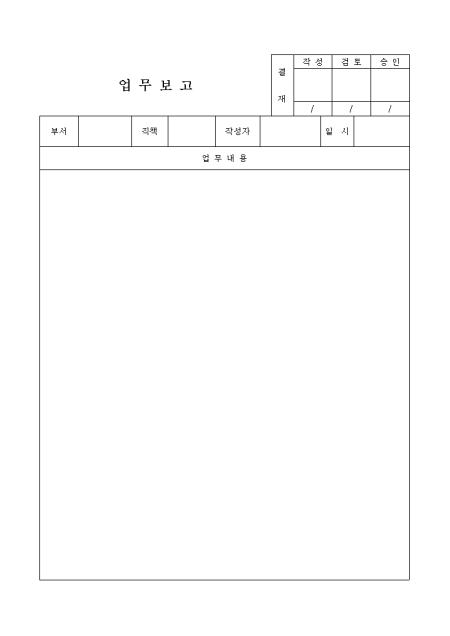 부서, 직책, 작성자, 일시등을 기재하고 업무내용을 보고할때 사용하는 양식입니다.