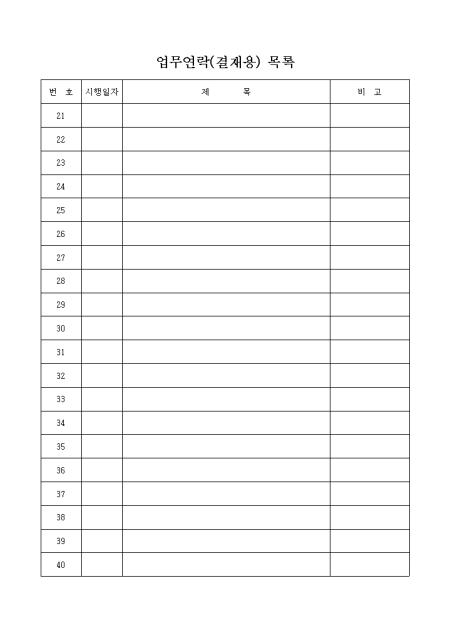결재용 업무연락 목록양식입니다.
