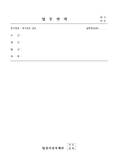 문서번호, 수신, 참조, 발신, 제목등을 기재하도록 되어 있는 업무연락양식입니다.