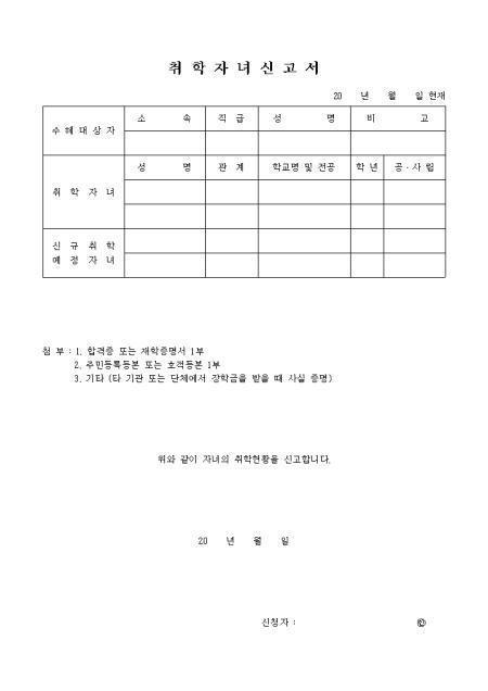 회사의 자녁의 취학현황을 신고할 때 사용하는 양식입니다.