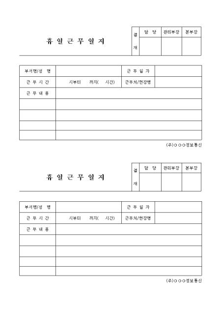 휴일 근무내역을 보고할 때 사용하는 양식입니다.