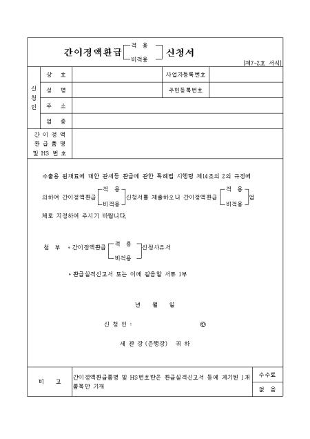 수출용원재료에대한관세등환급사무처리에관한고시 제2-10조의 규정에 의하여 간이정액환급(적용.비적용)승인 신청합니다.
